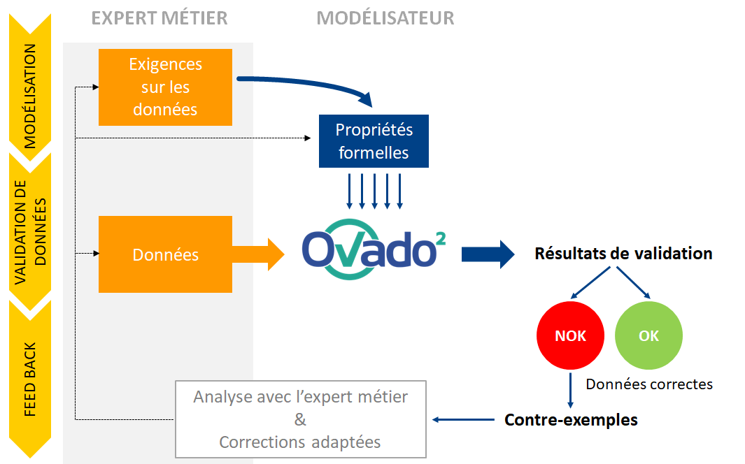 OVADO2® vérifie alors automatiquement que les données en entrée satisfont ces propriétés. La non-conformité d’un jeu de données est caractérisée par l’extraction d’un contre-exemple.